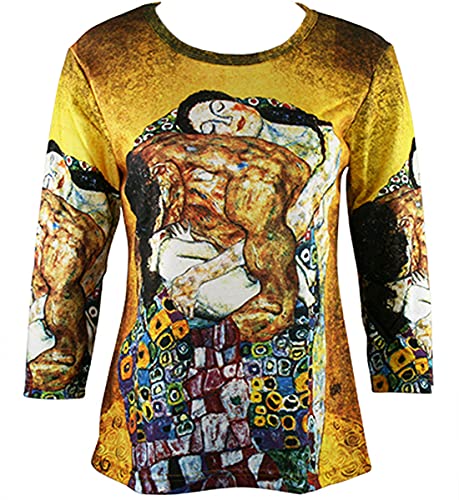 Please note that these tops have a little thicker fabric and taper in the middle so if you want a looser fitting top then you will want to go up one size in this collection. Please refer to size chart within the listing. -- Women's fashion tops designed to maximize comfort and artistic style utilizing artwork from Van Gogh, Monet, Degas, Kandinsky, Renoir, Klimt and other artists. The classic and famous works of art from Steinlen, Matisse, Frida, Hokusai and other famous artists are transformed into contemporary woman's fashion clothing styled in 3/4, full length and short sleeves as well as tank tops, artfully illustrated onto a cotton poly blend. These fashion artistic garments are designed to provide a beautiful blend of colors along with a maximum sense of style, feel and comfort. These world renowned artist designed fashion tops are hand silk-screened creating an individualized garment where no two are exactly alike. Additionally many of the tops have limited patterns that will be retired after the initial run similar to an expensive piece of art. The term wearable art or fashion for art really does have some meaning. The artists and prints used in this collection have been known worldwide for their unique, colorful and masterful style of art all of which can be seen as well as worn on these beautiful women's fashion tops.