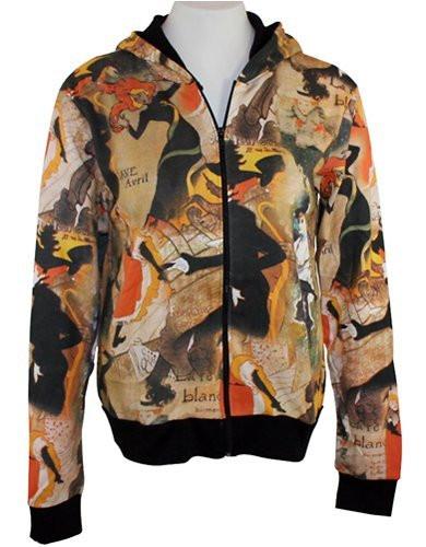 Toulouse Lautrec Divan Japonais Long Sleeve Zippered Front Woman's Hooded Art Top