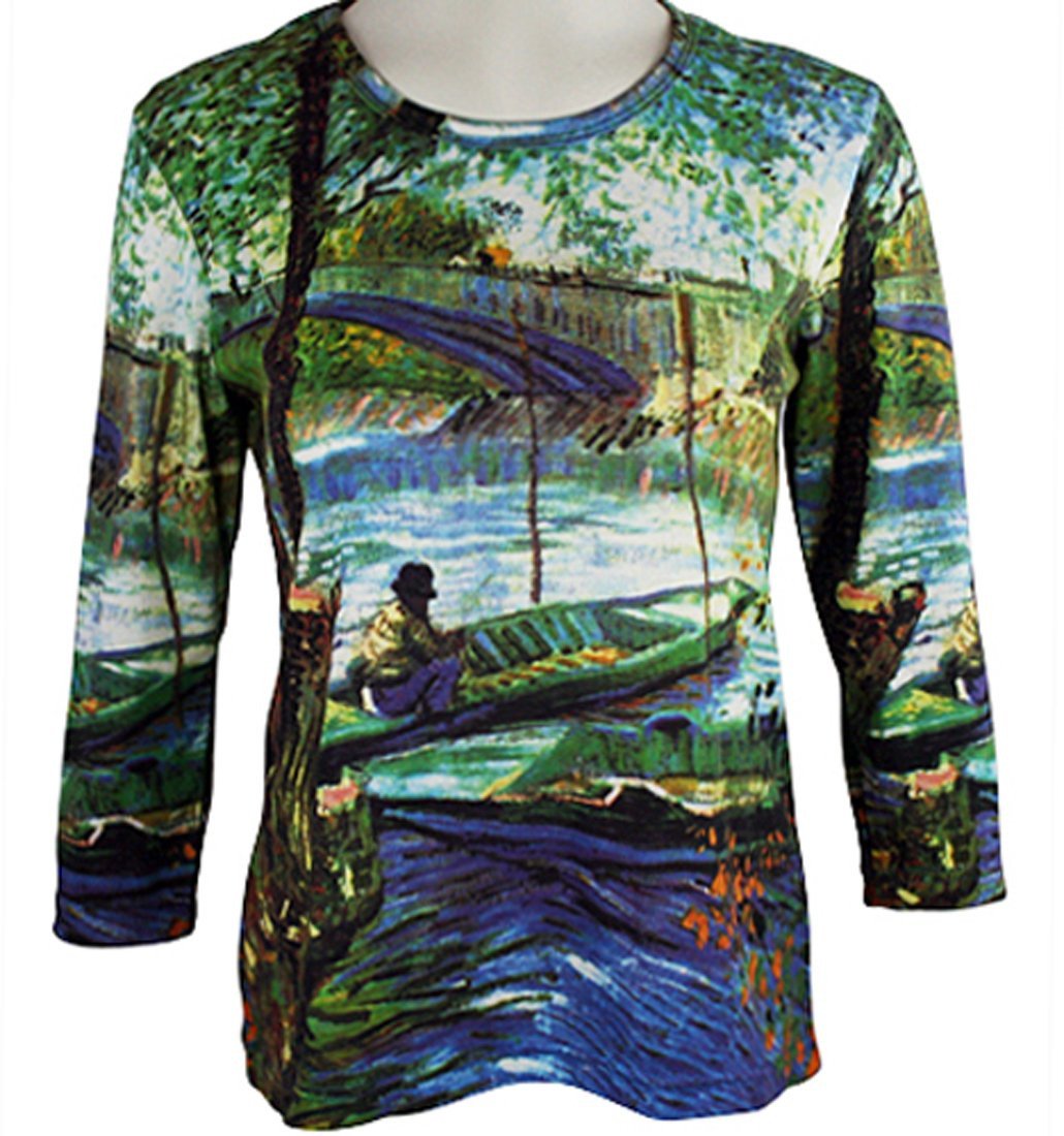 Please note that these tops have a little thicker fabric and taper in the middle so if you want a looser fitting top then you will want to go up one size in this collection. Please refer to size chart within the listing. -- Women's fashion tops designed to maximize comfort and artistic style utilizing artwork from Van Gogh, Monet, Degas, Kandinsky, Renoir, Klimt and other artists. The classic and famous works of art from Steinlen, Matisse, Frida, Hokusai and other famous artists are transformed into contemporary woman's fashion clothing styled in 3/4, full length and short sleeves as well as tank tops, artfully illustrated onto a cotton poly blend. These fashion artistic garments are designed to provide a beautiful blend of colors along with a maximum sense of style, feel and comfort. These world renowned artist designed fashion tops are hand silk-screened creating an individualized garment where no two are exactly alike. Additionally many of the tops have limited patterns that will be retired after the initial run similar to an expensive piece of art. The term wearable art or fashion for art really does have some meaning. The artists and prints used in this collection have been known worldwide for their unique, colorful and masterful style of art all of which can be seen as well as worn on these beautiful women's fashion tops.